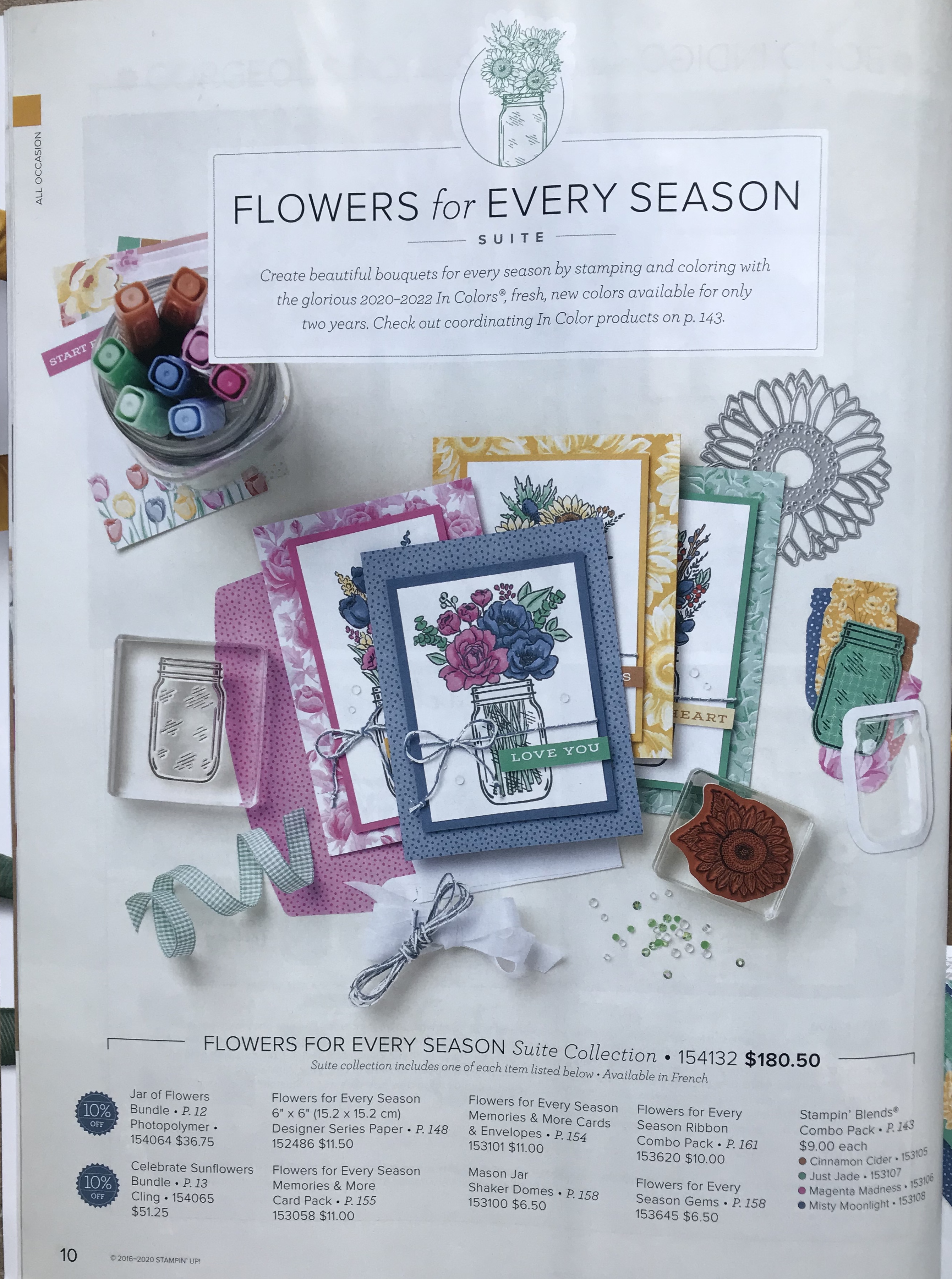 Here is the bundle for the Flowers for Every Season.  You look and say Wow that is pricey! But look again this is a mega bundle.  You get two bundles. One is the Jar of Flowers and the other is Celebrate Sunflowers.  You also get everything that is listed – DSP, ribbon, gems, blends and more.