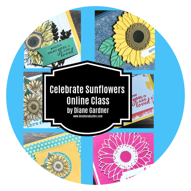 In this class you will receive the Celebrate Sunflowers Bundle plus the card kit and PDF for 6 cards created with the Bundle. You will complete them at your own pace in your own home. Here are the options for this class.