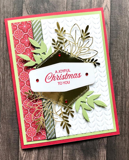 I used Christmas Gleaming and Joyful Holly for the sentiments. I cased the first card from someone on Demonstrator Planning Place this morning. When I went back to find out who made it it had vanished except for the picture so I cannot give the creator credit. It is a beautiful way to use the die cuts from the Forevern Gold Laser Speciality Paper. Which one do you like the best?