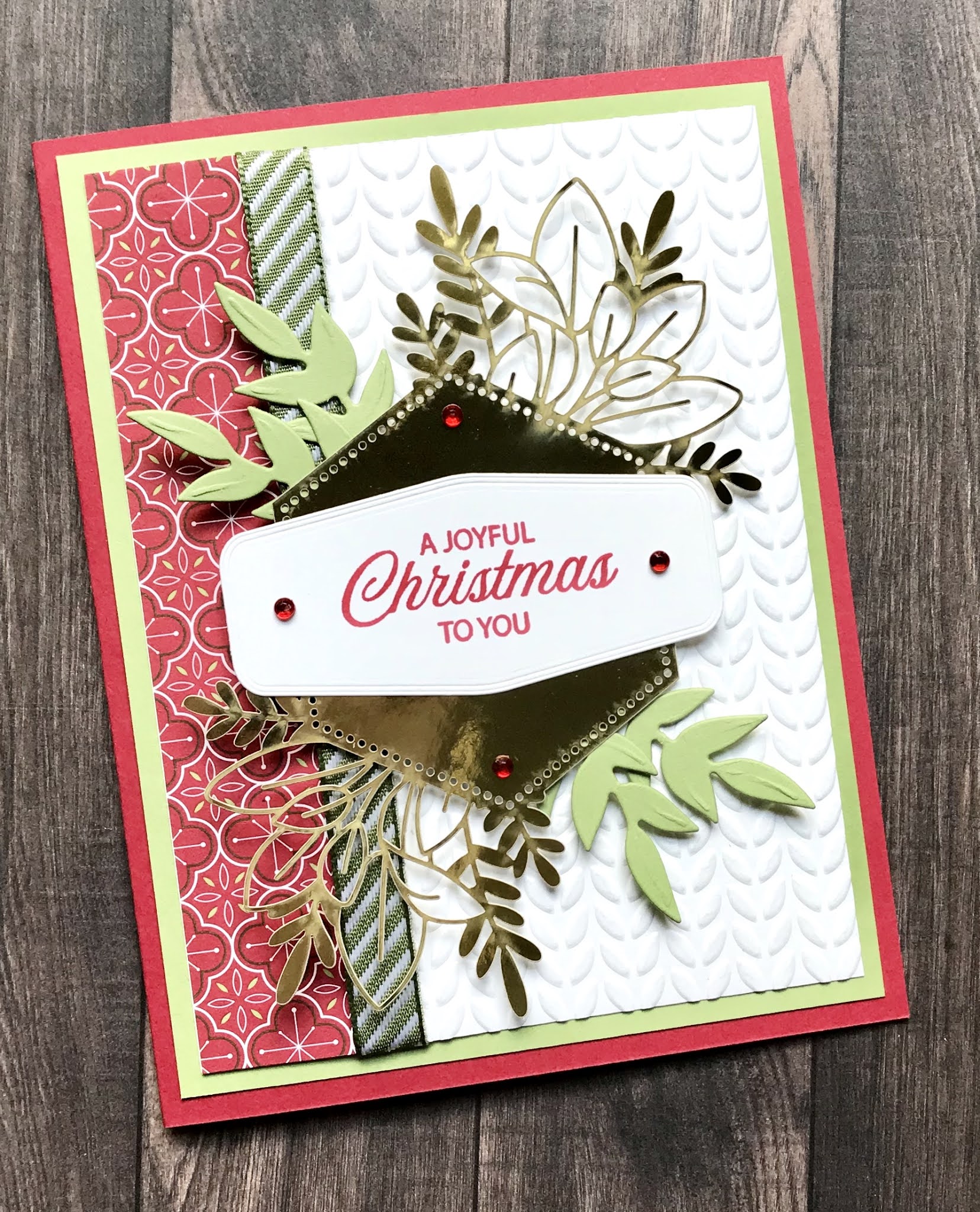 I used Christmas Gleaming and Joyful Holly for the sentiments. I cased the first card from someone on Demonstrator Planning Place this morning. When I went back to find out who made it it had vanished except for the picture so I cannot give the creator credit. It is a beautiful way to use the die cuts from the Forevern Gold Laser Speciality Paper. Which one do you like the best?