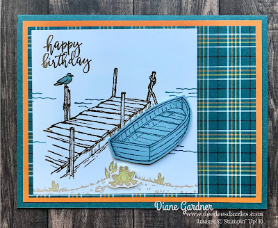 This is a birthday card created using the By the Dock stamp set.  I was told that my boat had no way to power it.  The set does not have a motor but it does have an oar. What do you think? Should I add some oars?