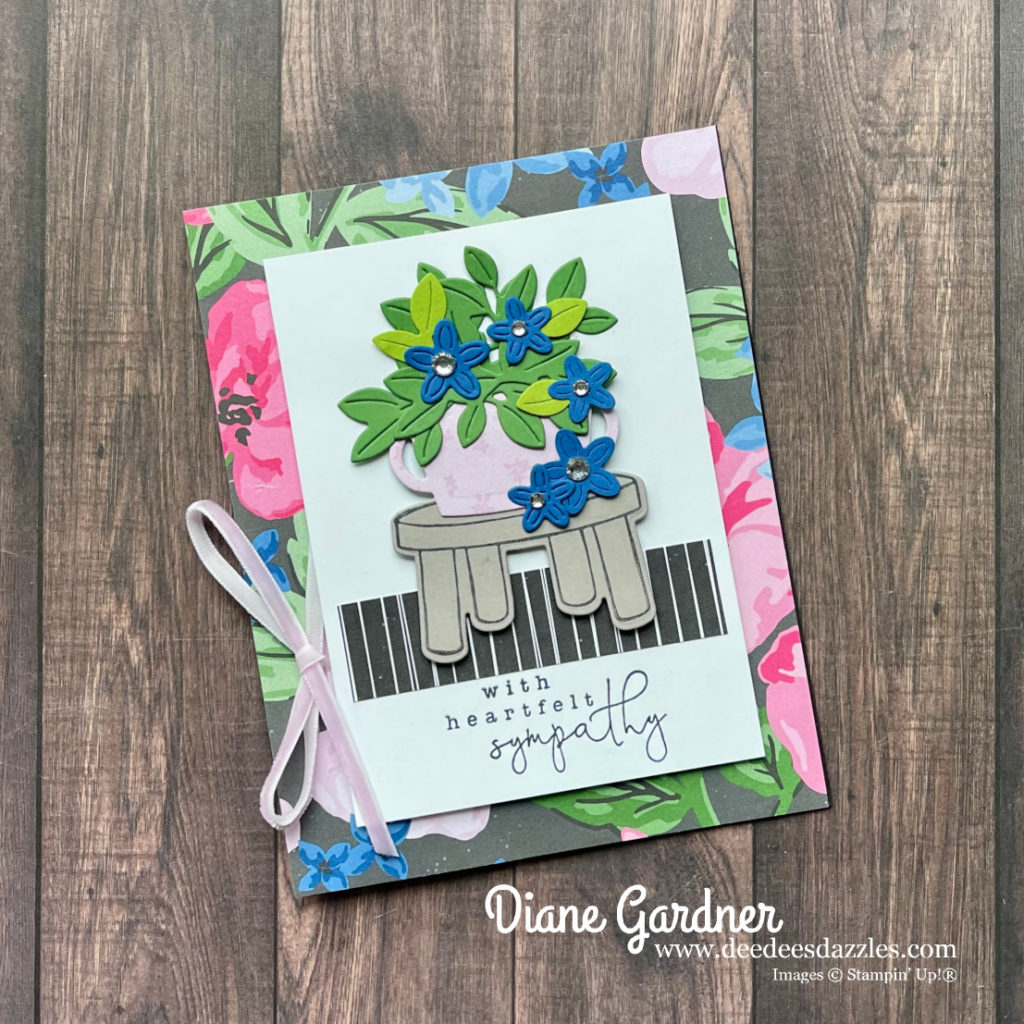 This lovely bundle is on the Last Chance List! Do you own it yet? Now is a great time for you to order, as you’ll be able to take advantage of my April Fool’s Day Sale. We used this set in one of my monthly classes to make the card below.