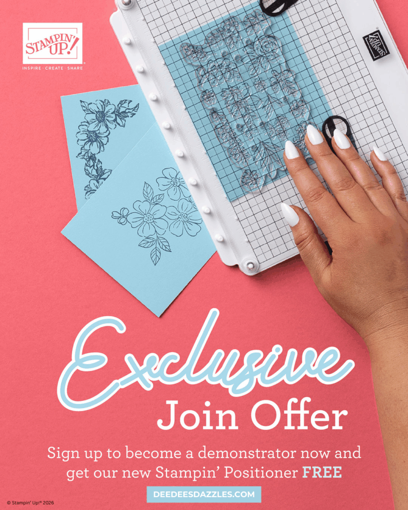 This offer makes this the perfect time to tell you about all the other amazing perks that come with being a demonstrator, like a 20–25% product discount, exclusive early access to the latest releases (like the Stampin’ Positioner), and catalogs, connection to a global community of crafters, and so much more!