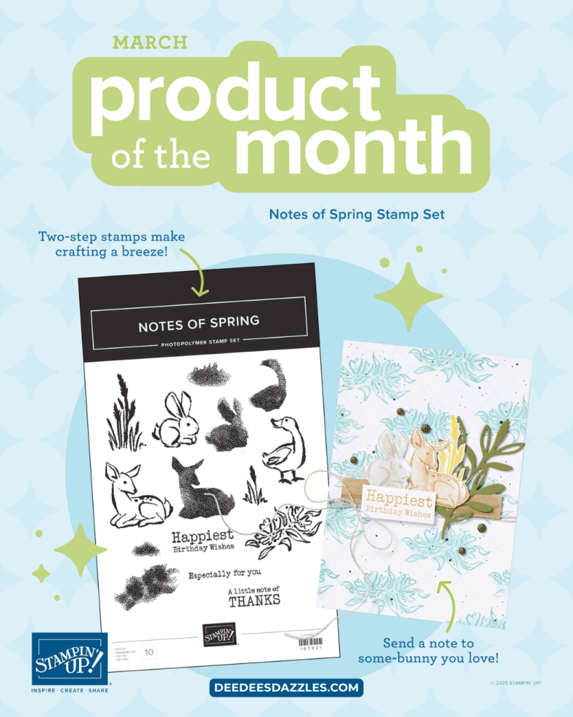 I’ll be sharing all the updates and changes with you soon, but today I’m excited to introduce the Product of the Month — the adorable Notes of Spring stamp set! 🌸
